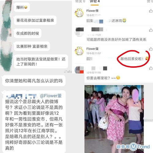 趋势网(微博|微信|百度号):花花董花花背景曝光,网传董花花是职业小三?阿里接班人妻子董花花家庭背景出身、学历婚姻情史?阿里太子淘宝天猫总裁蒋凡出.轨张大奕?总裁夫人董花花青梅竹马还是小三上位?阿里童文红回应蒋凡出.轨事件,家庭事情波及公司必须道歉,也在调查中。