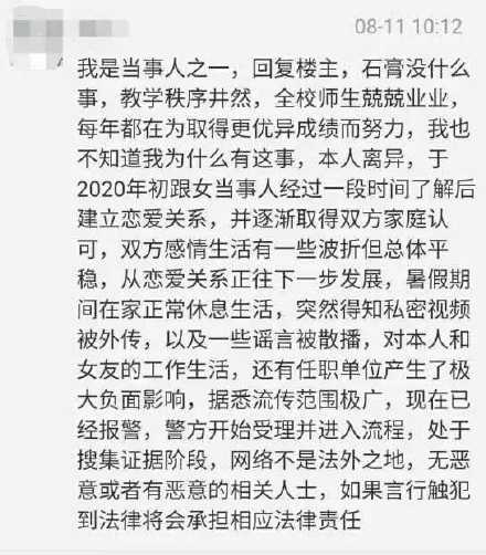 教育局回应称视频中女学生已毕业,与涉事教师的师德师风并无关系。